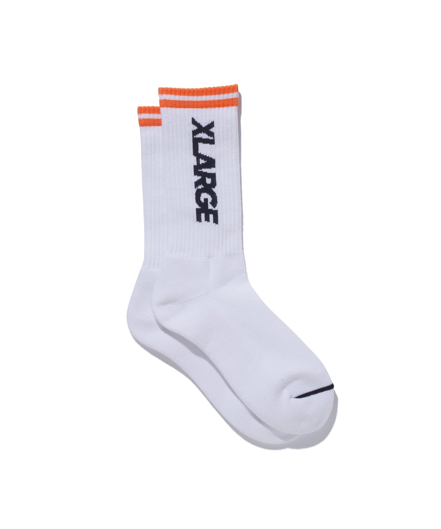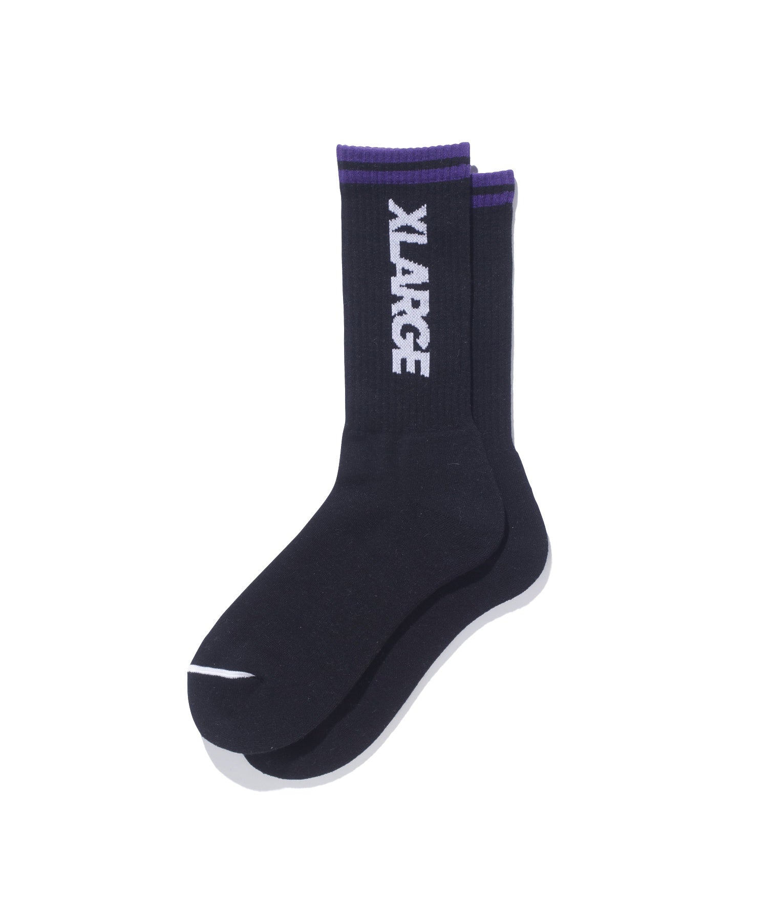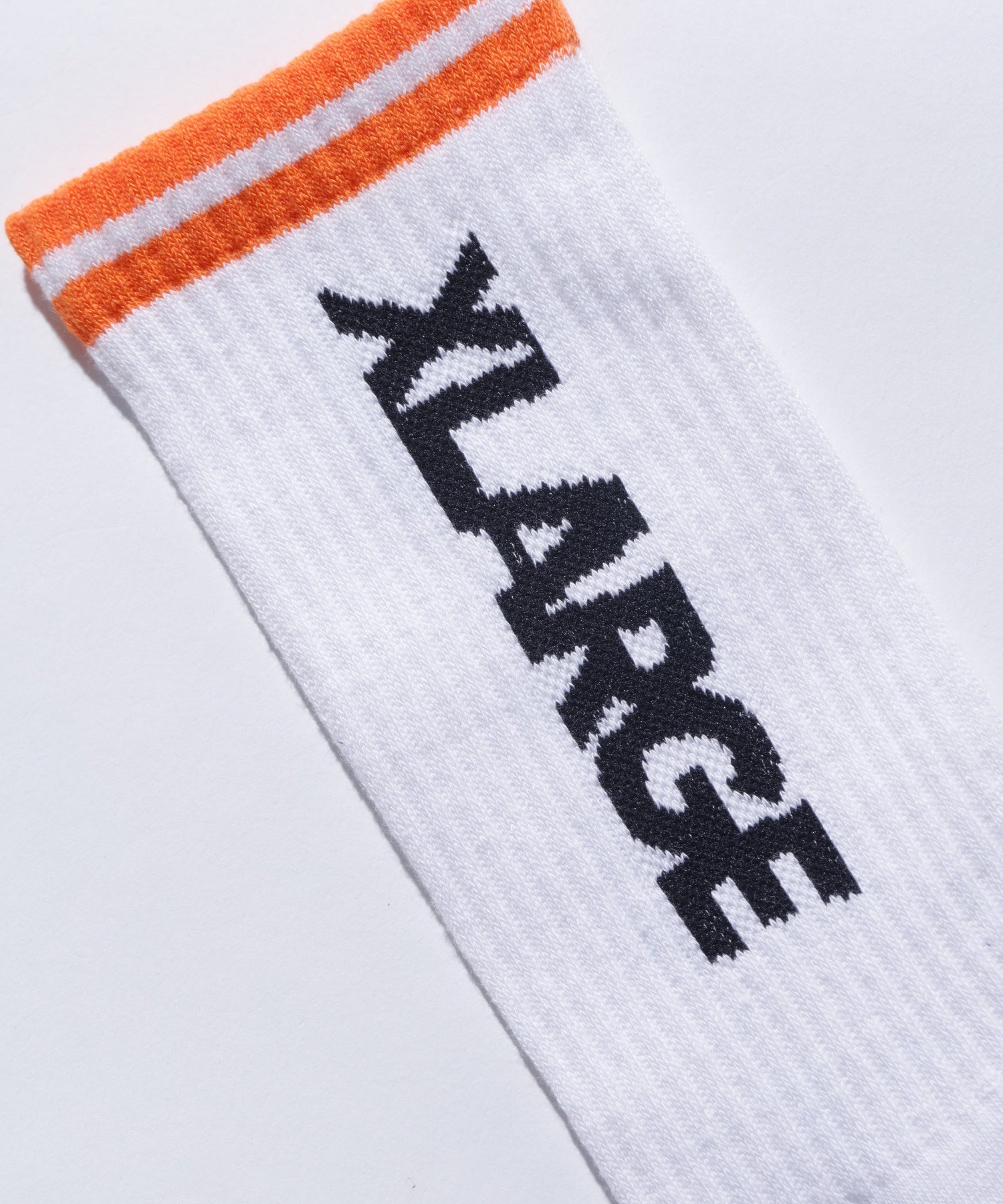 Socks featuring color-blocked lines and the XLARGE logo as standout elements. Crafted with excellent cushioning in a pile knit on the footbed.