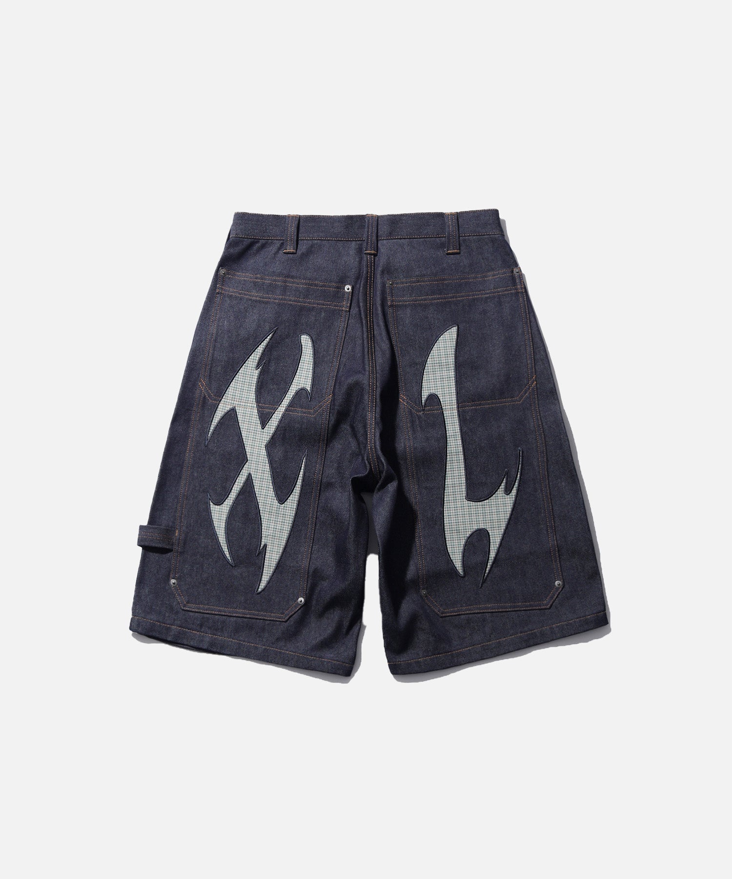 A double layer construction on the back instead of the knees, where protection is reimagined. Made with durable fabric with contrasting check panels on each leg. Pairs well with the matching check shirt.