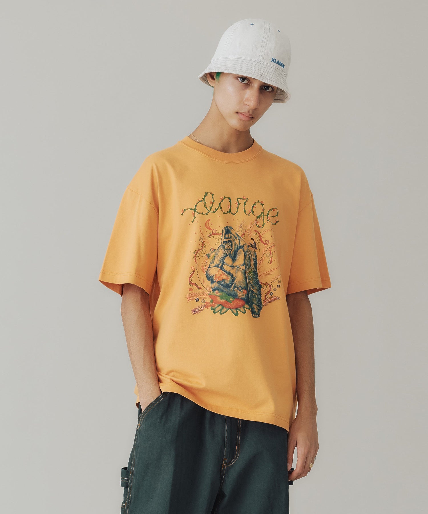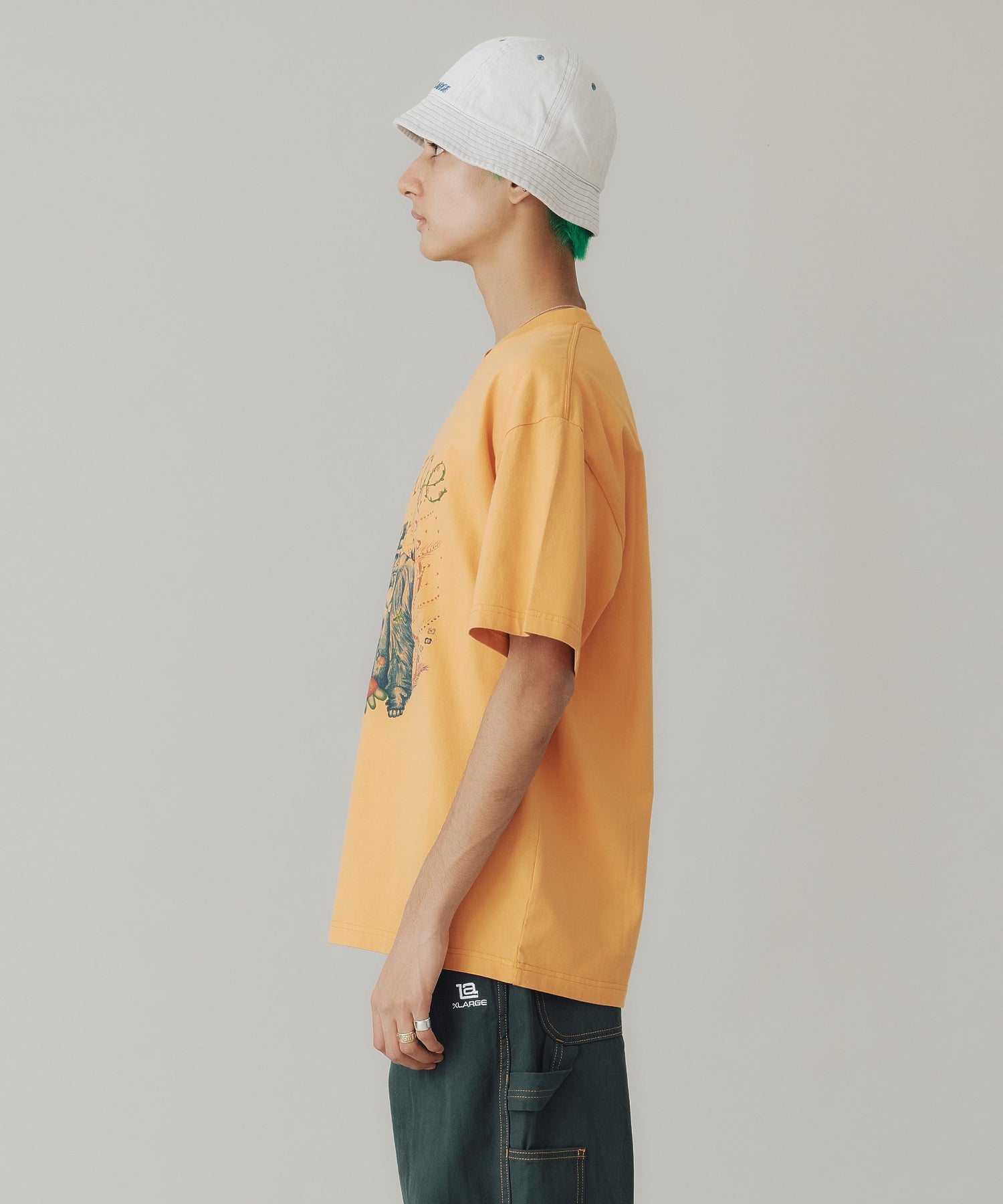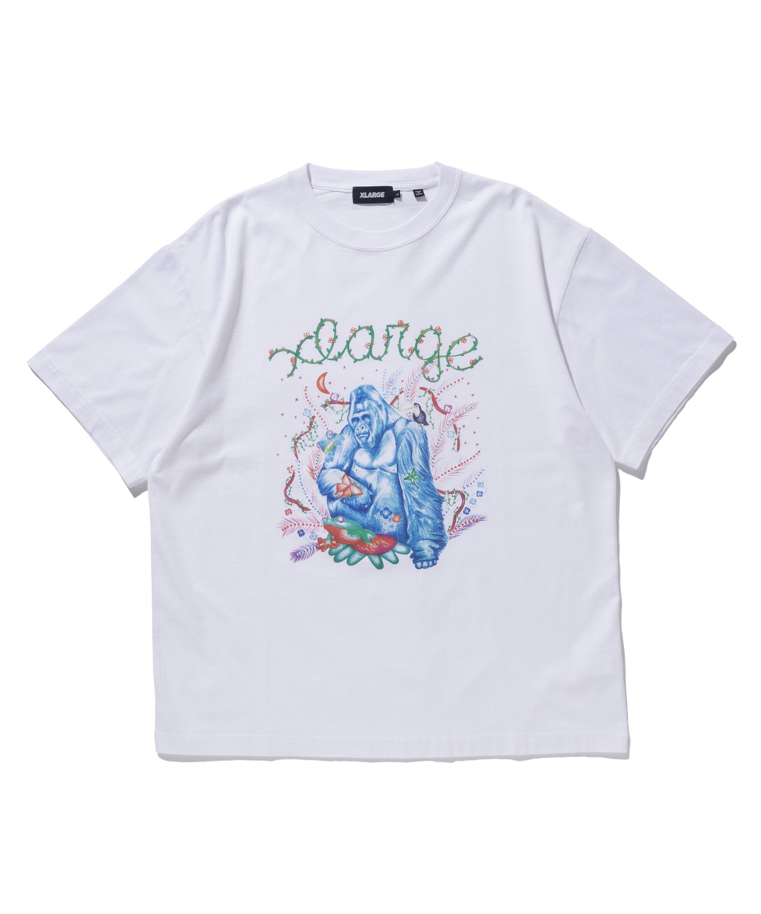 A crew-neck short-sleeve T-shirt with an impactful original graphic print prominently placed on the front.