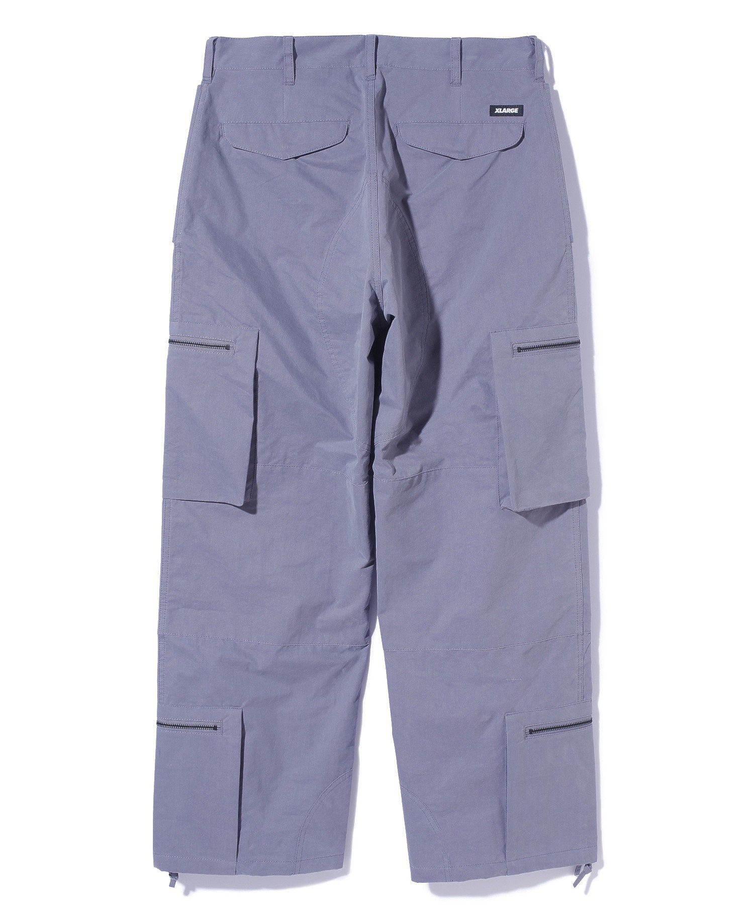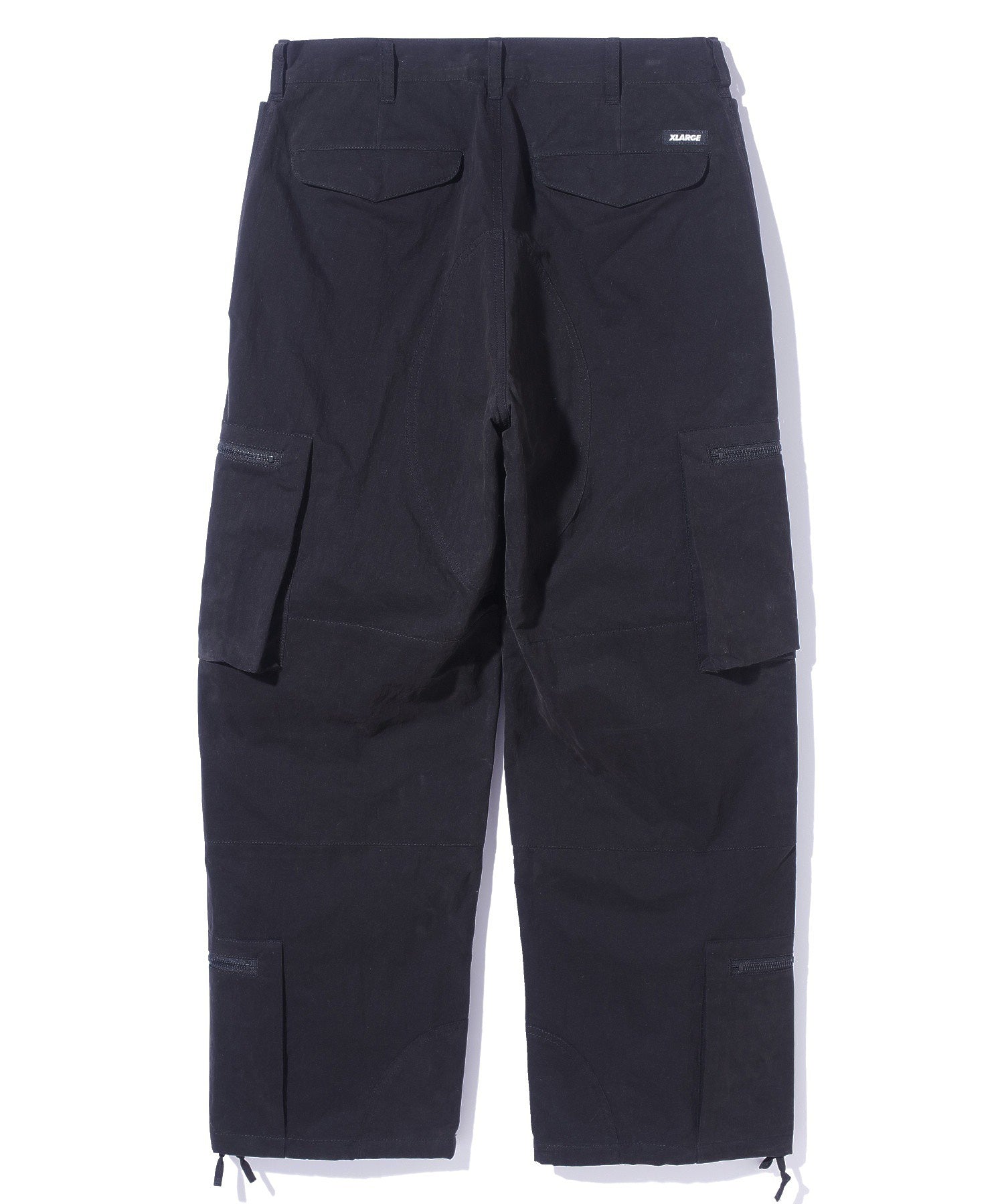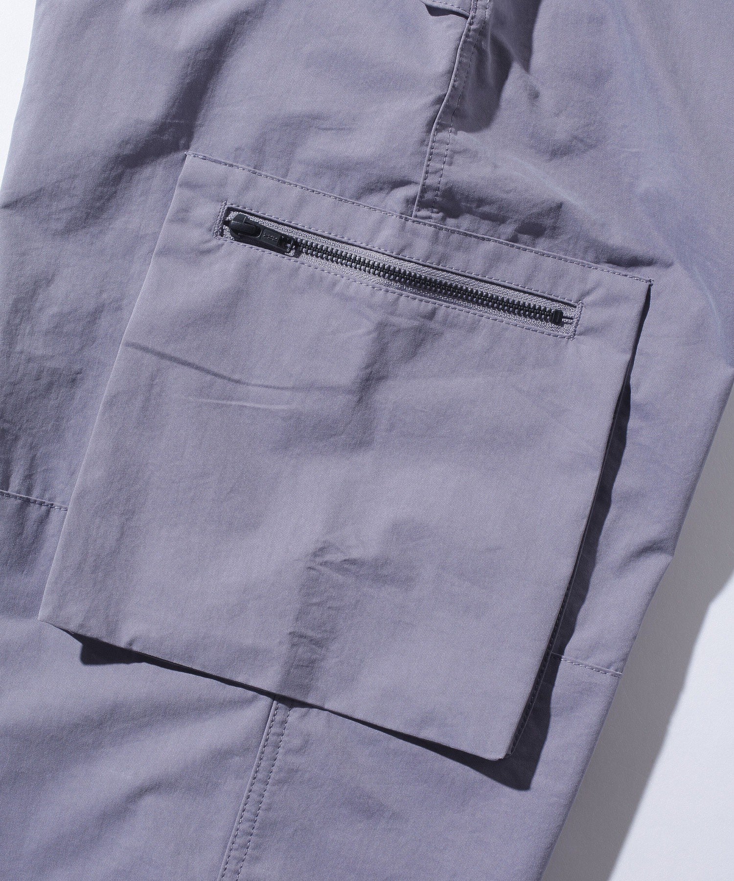 Cargo pants with pocket and panel designs. Equipped with drawstrings at the hem for adjustable styling. Crafted from a blend of cotton and nylon fabric, prioritizing breathability and durability against friction.