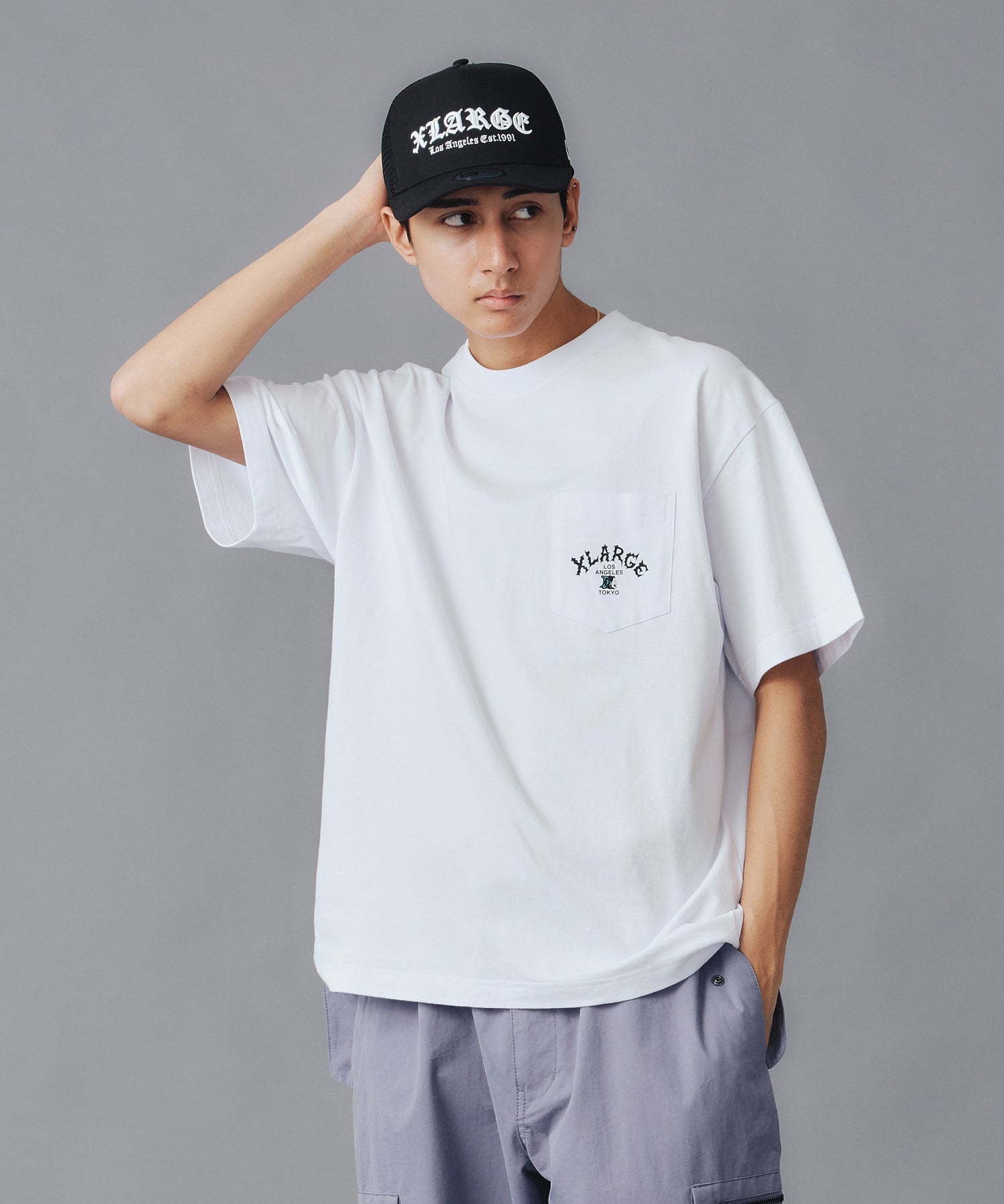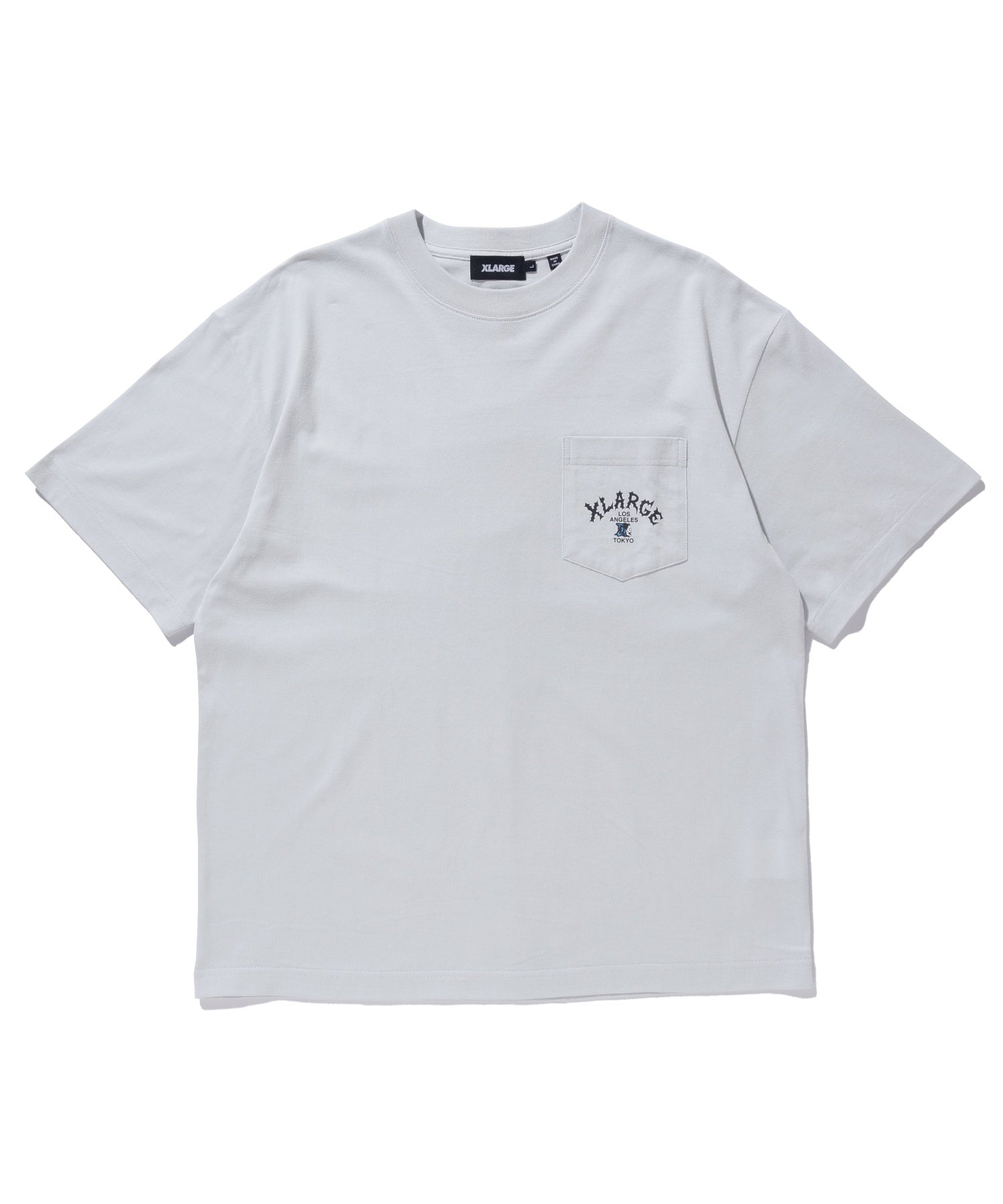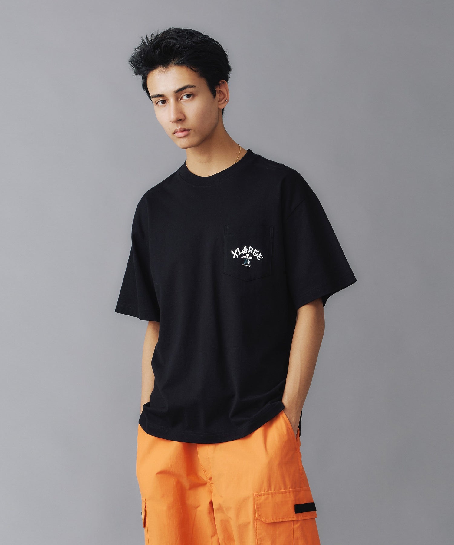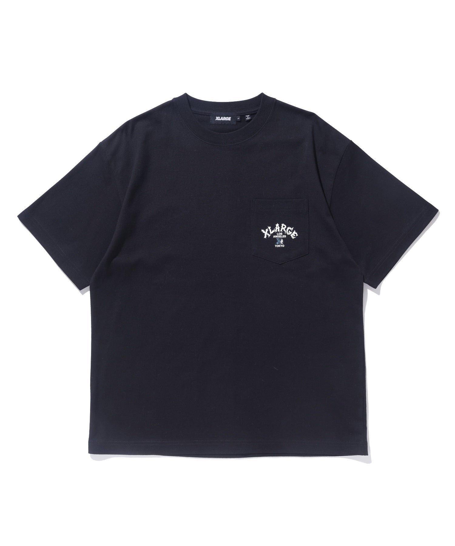 A crew-neck short-sleeve pocket T-shirt featuring an original graphic print prominently placed on the back, and a graphic print on the left chest pocket.