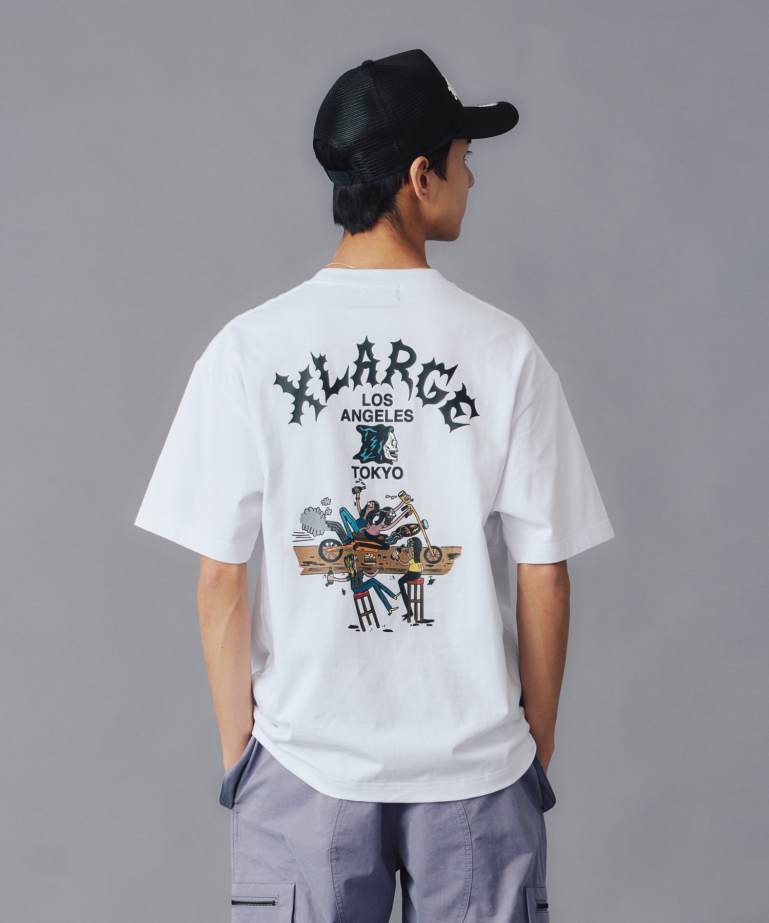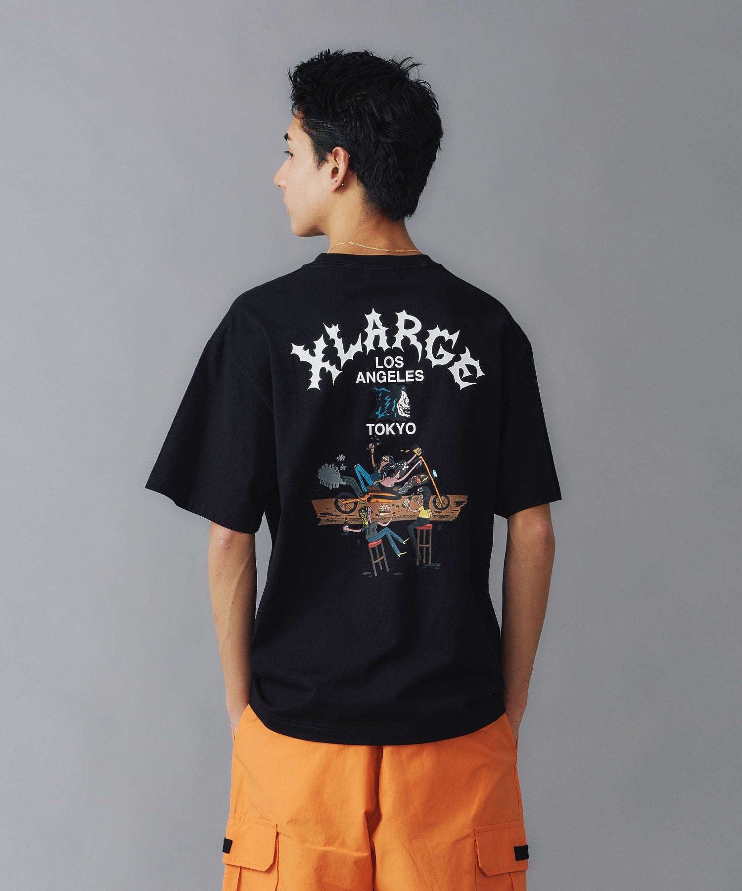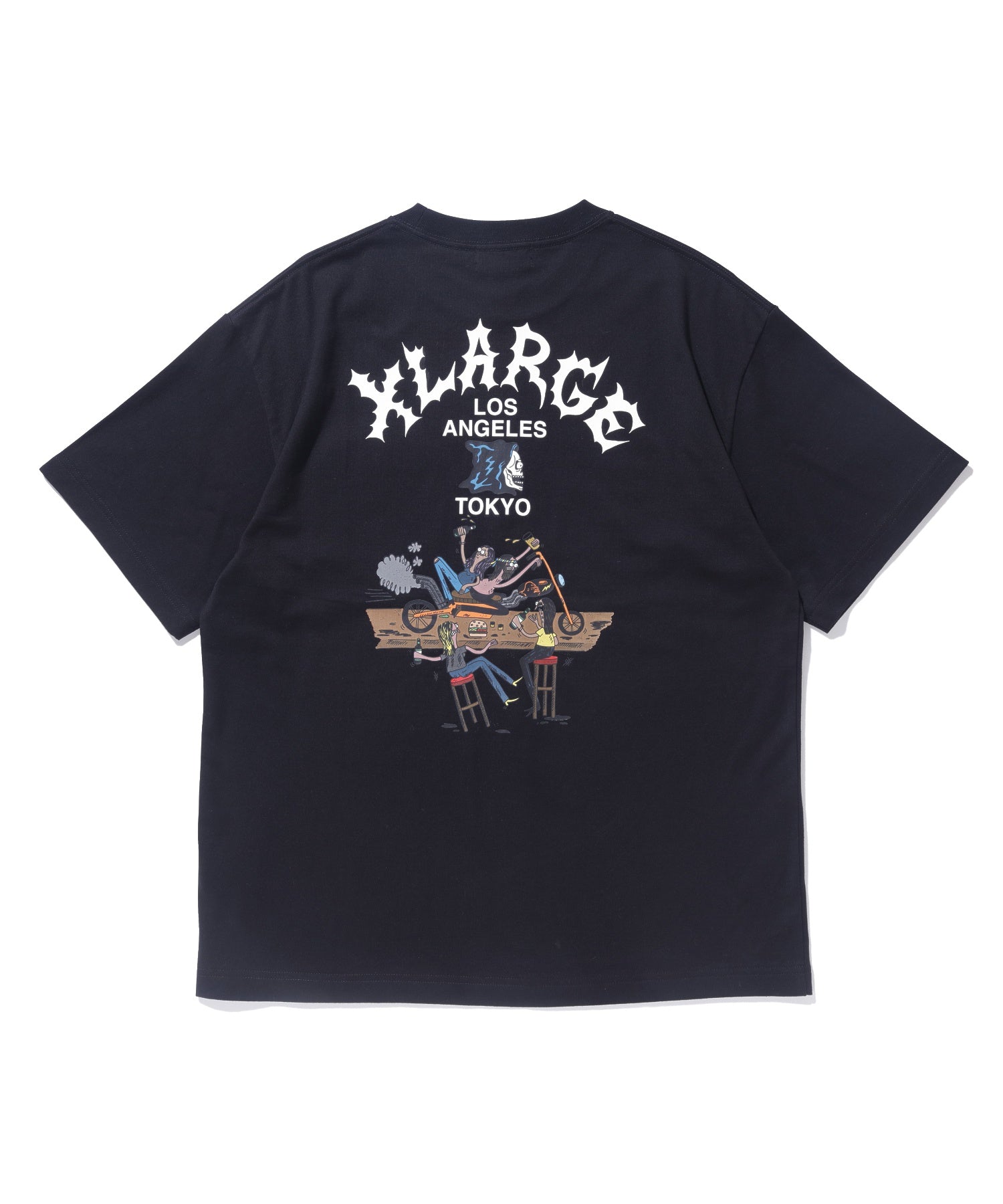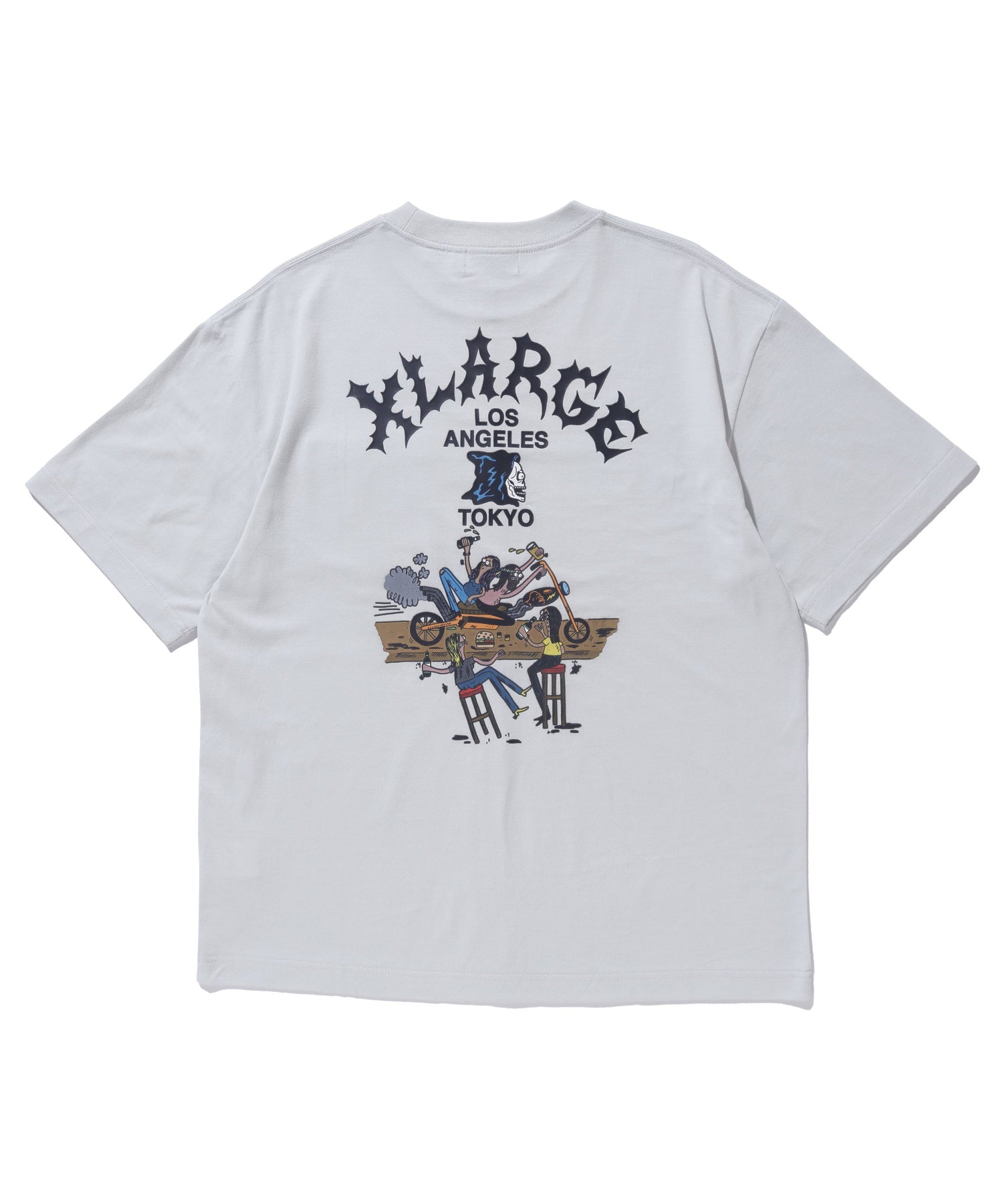 A crew-neck short-sleeve pocket T-shirt featuring an original graphic print prominently placed on the back, and a graphic print on the left chest pocket.