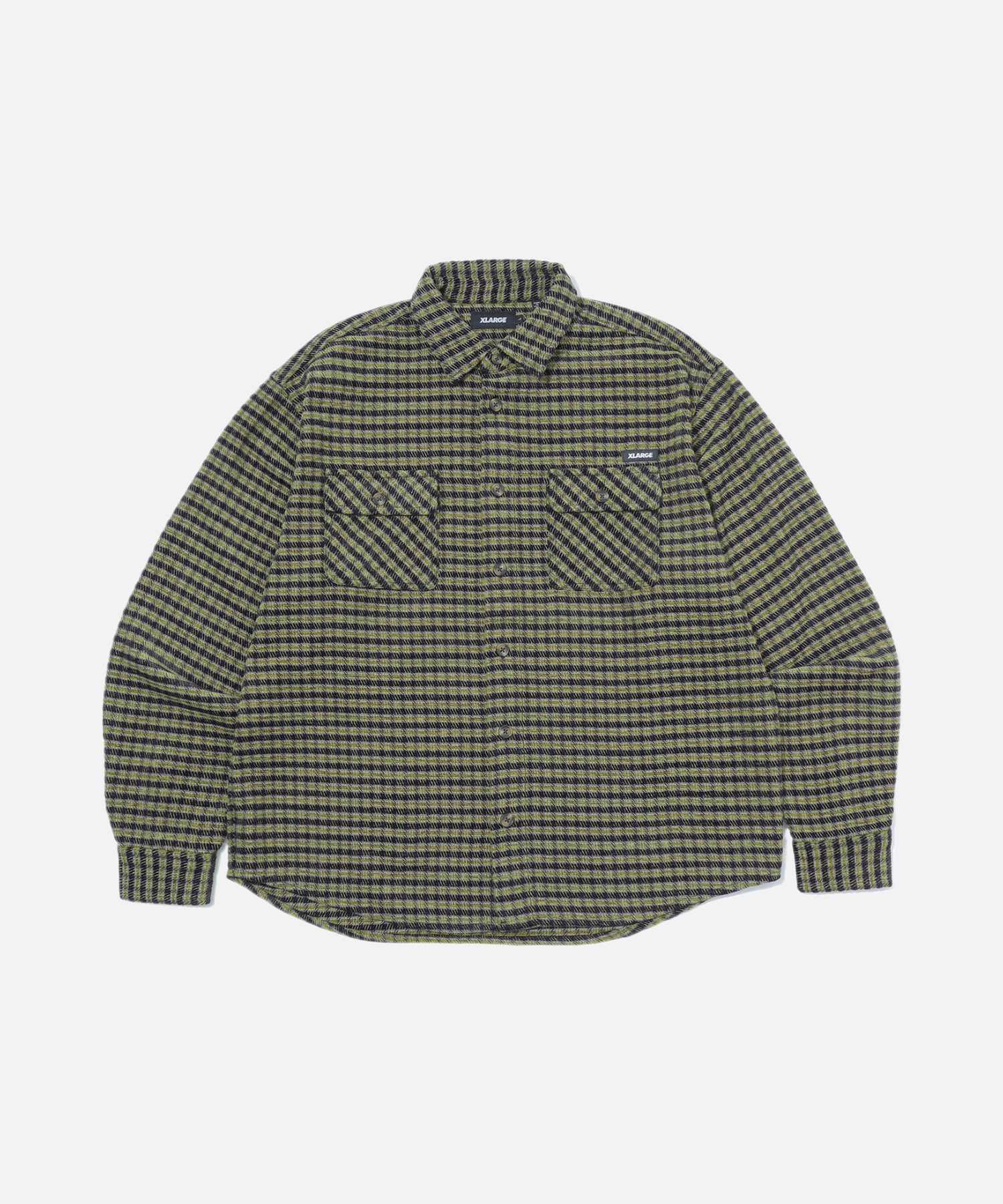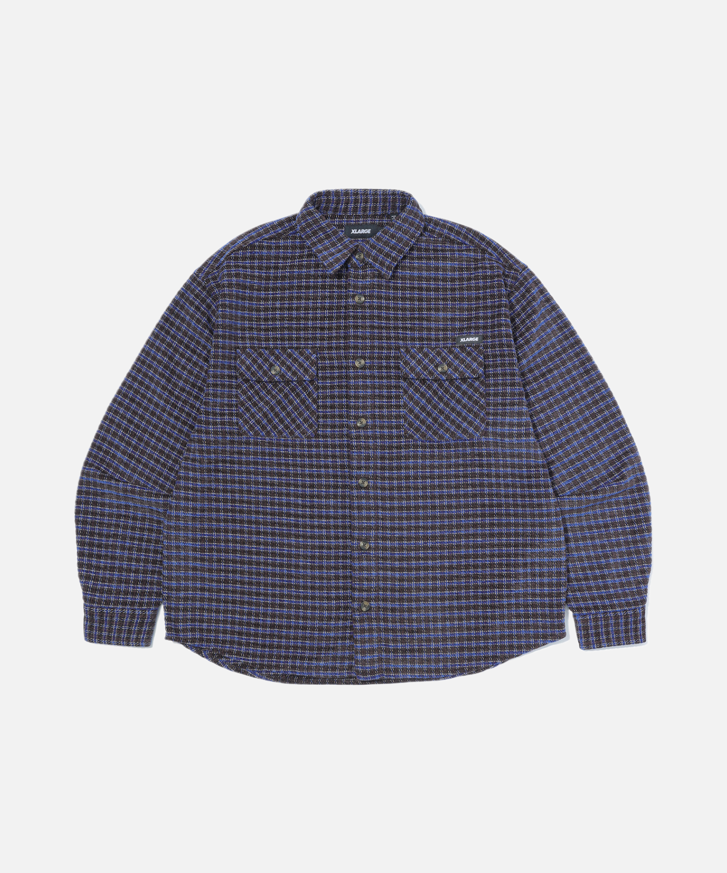 Long sleeve T-shirt featuring original check fabric with a sturdy texture, accented by an XLARGE logo above the chest pocket and styled in autumn-winter tones for versatile layering.