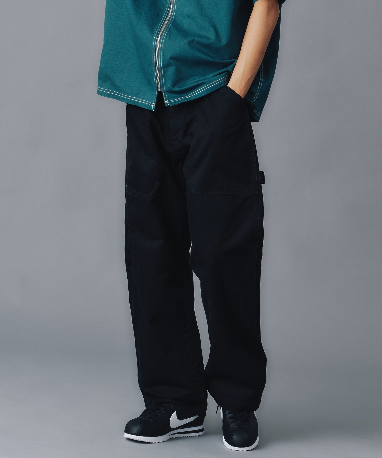 Painter pants with charming 90s details, featuring vertical big pockets placed on the back and meticulous attention to detail such as paneling and stitching.