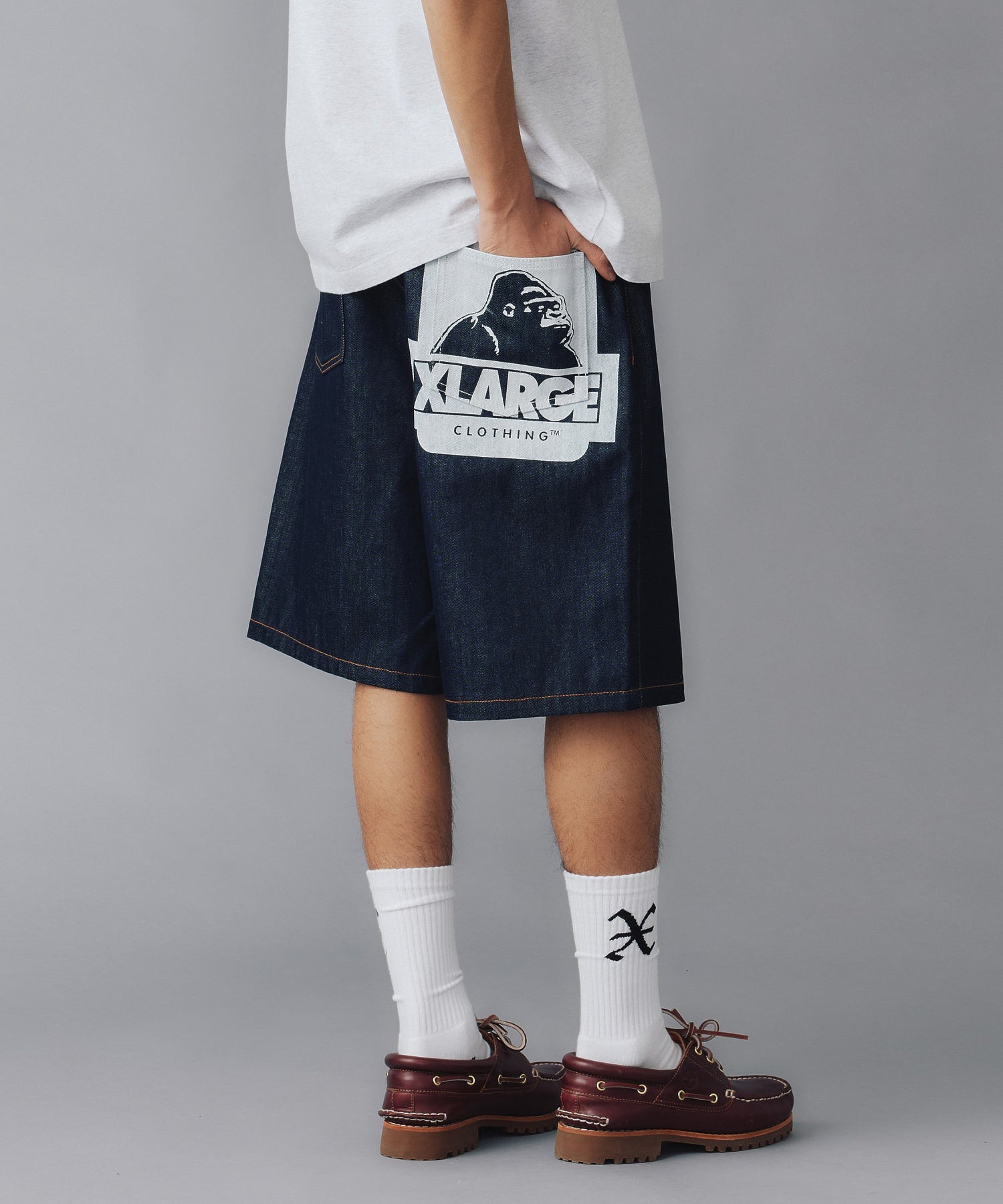 Denim shorts featuring a logo print on the back pocket. Crafted from denim fabric, they are essential additions to spring and summer wardrobes.