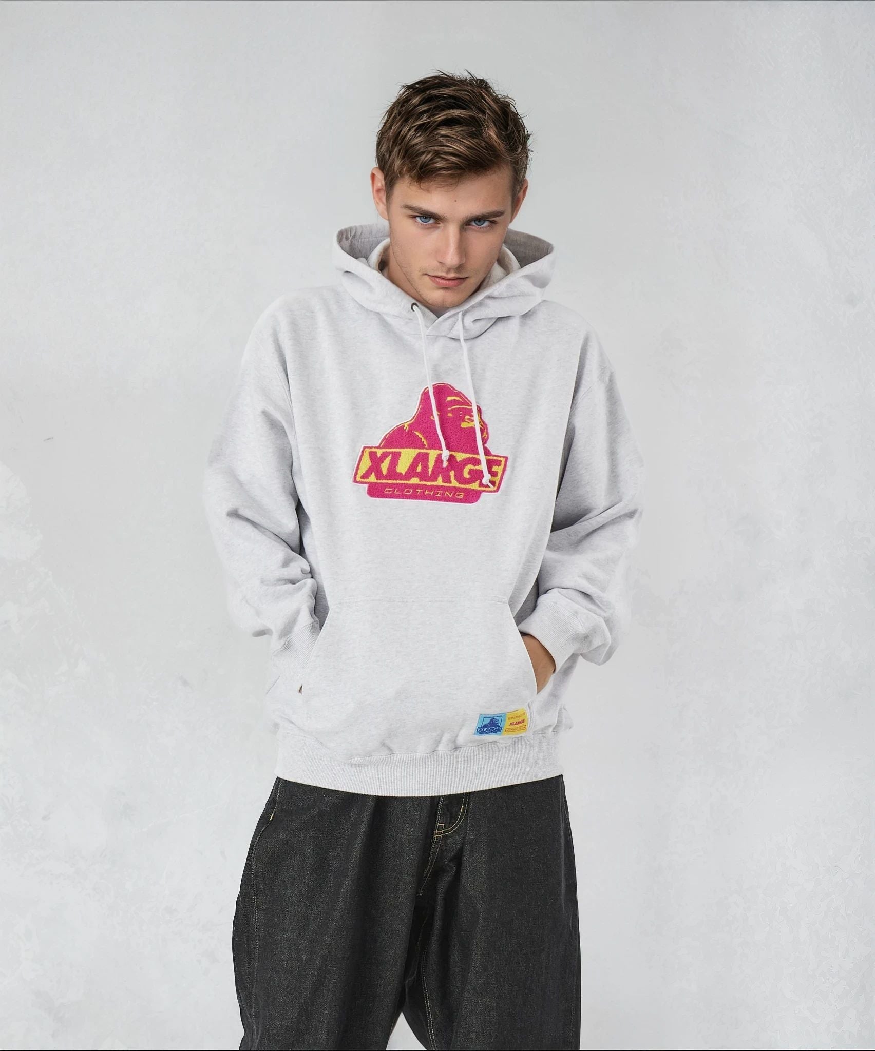 Hoodie with a bold color-blocked logo and branded hem label, designed for everyday use.
