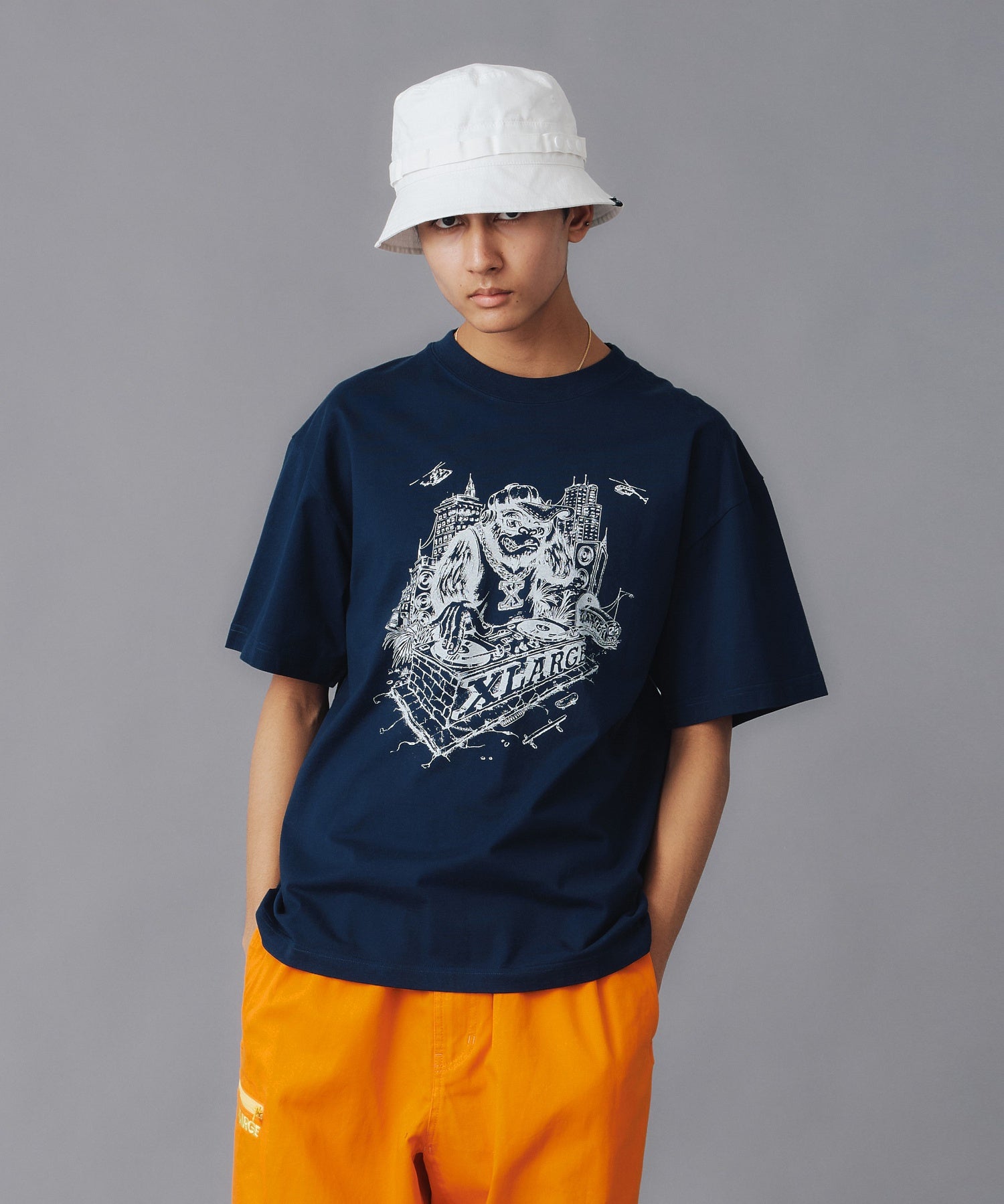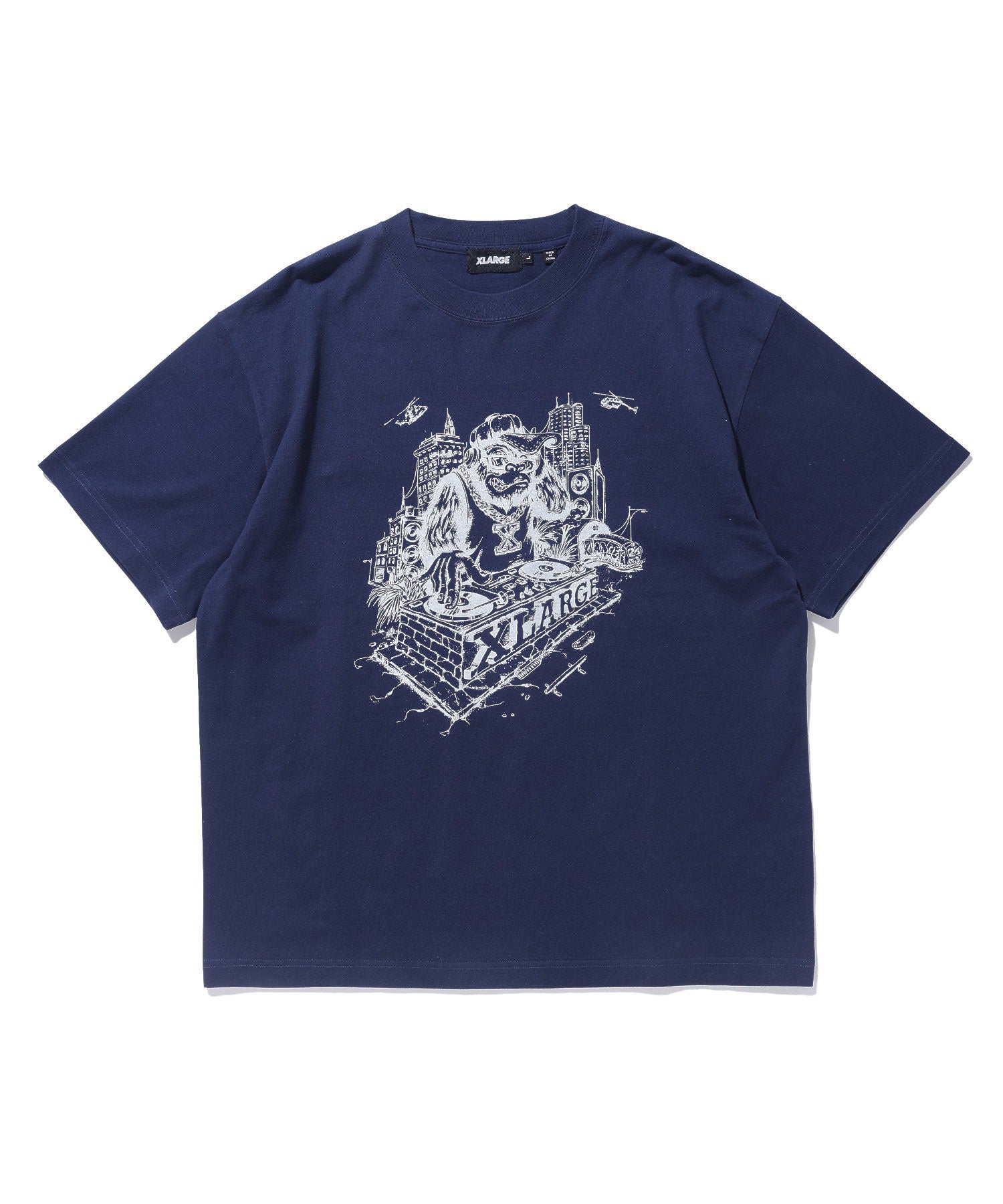 A crew-neck short-sleeve T-shirt with an original graphic print placed on the front.