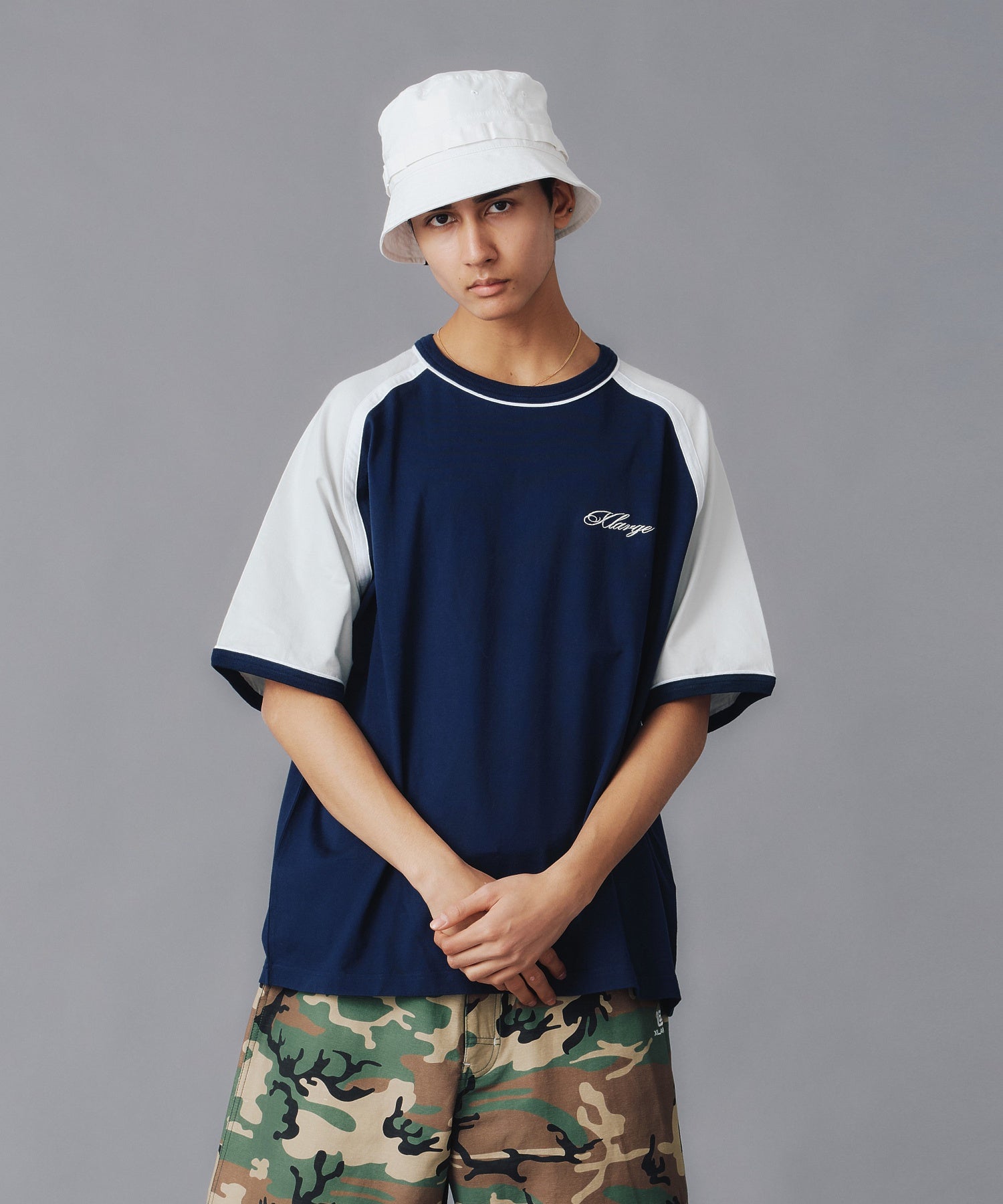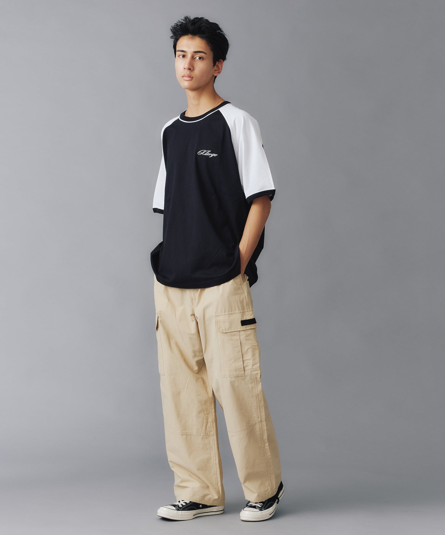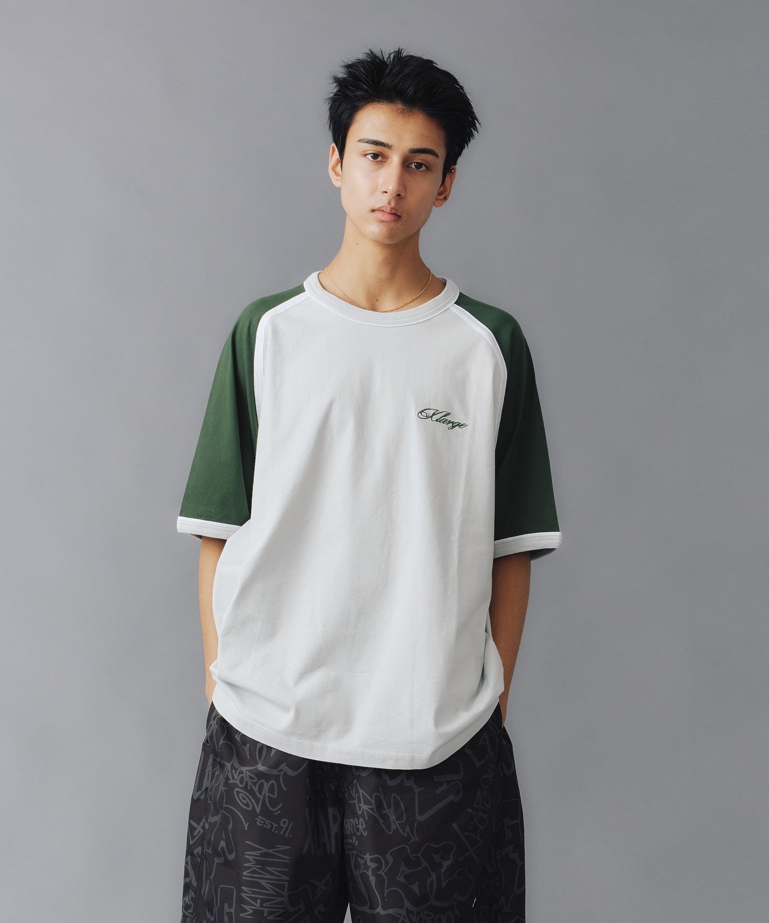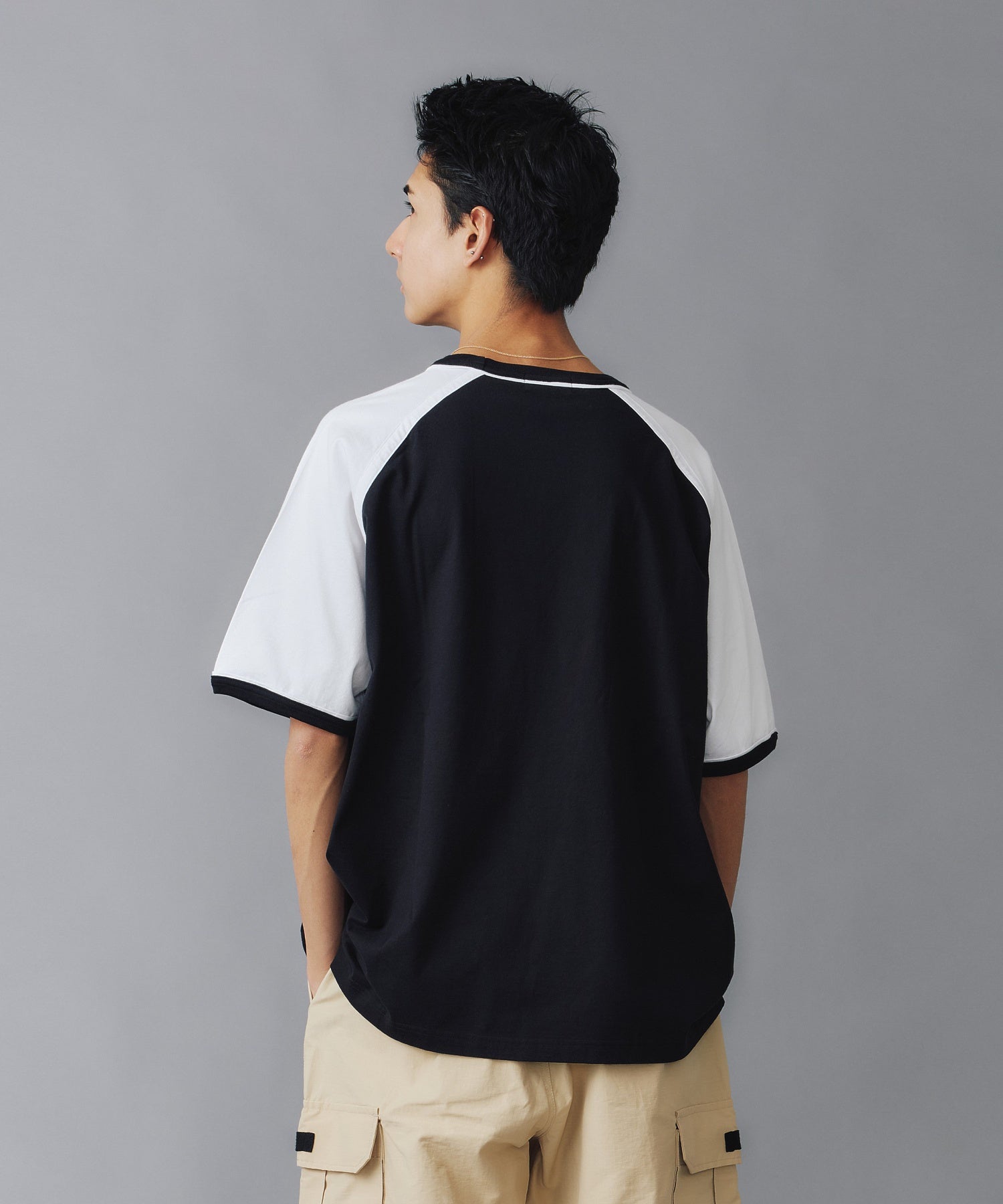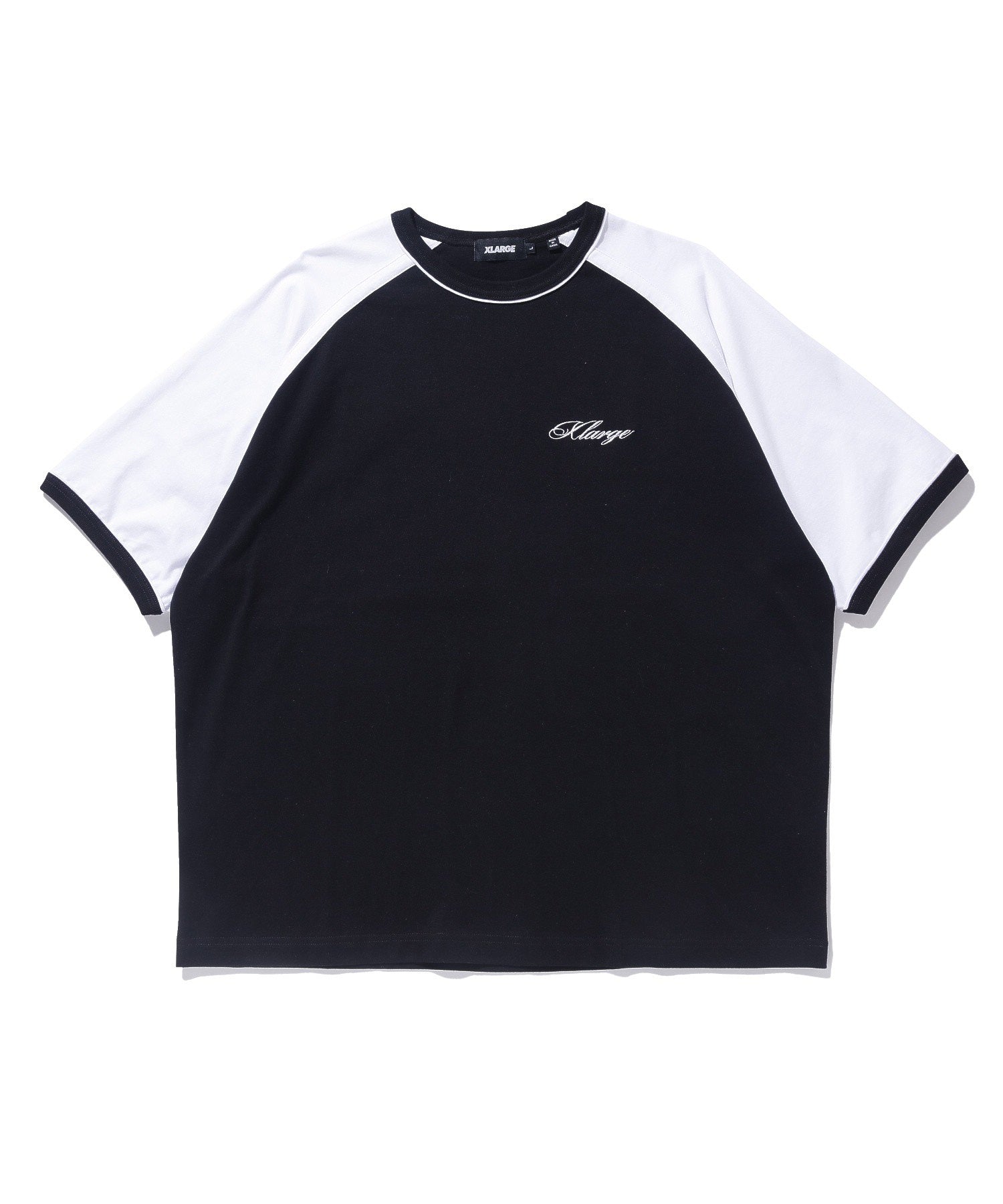 Raglan-sleeve tee with contrast piping for a sporty street edge.