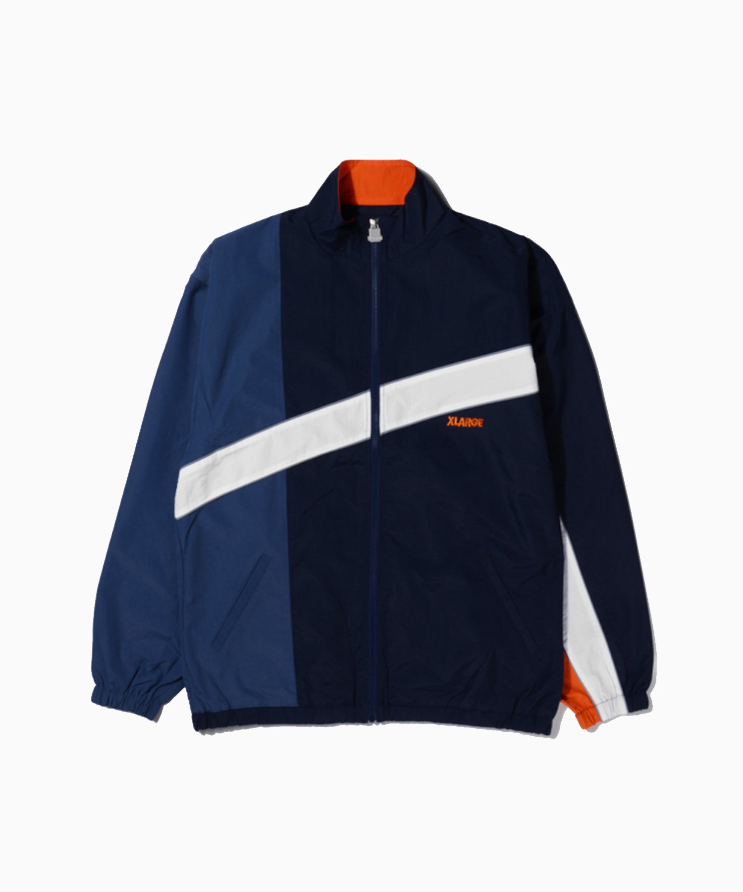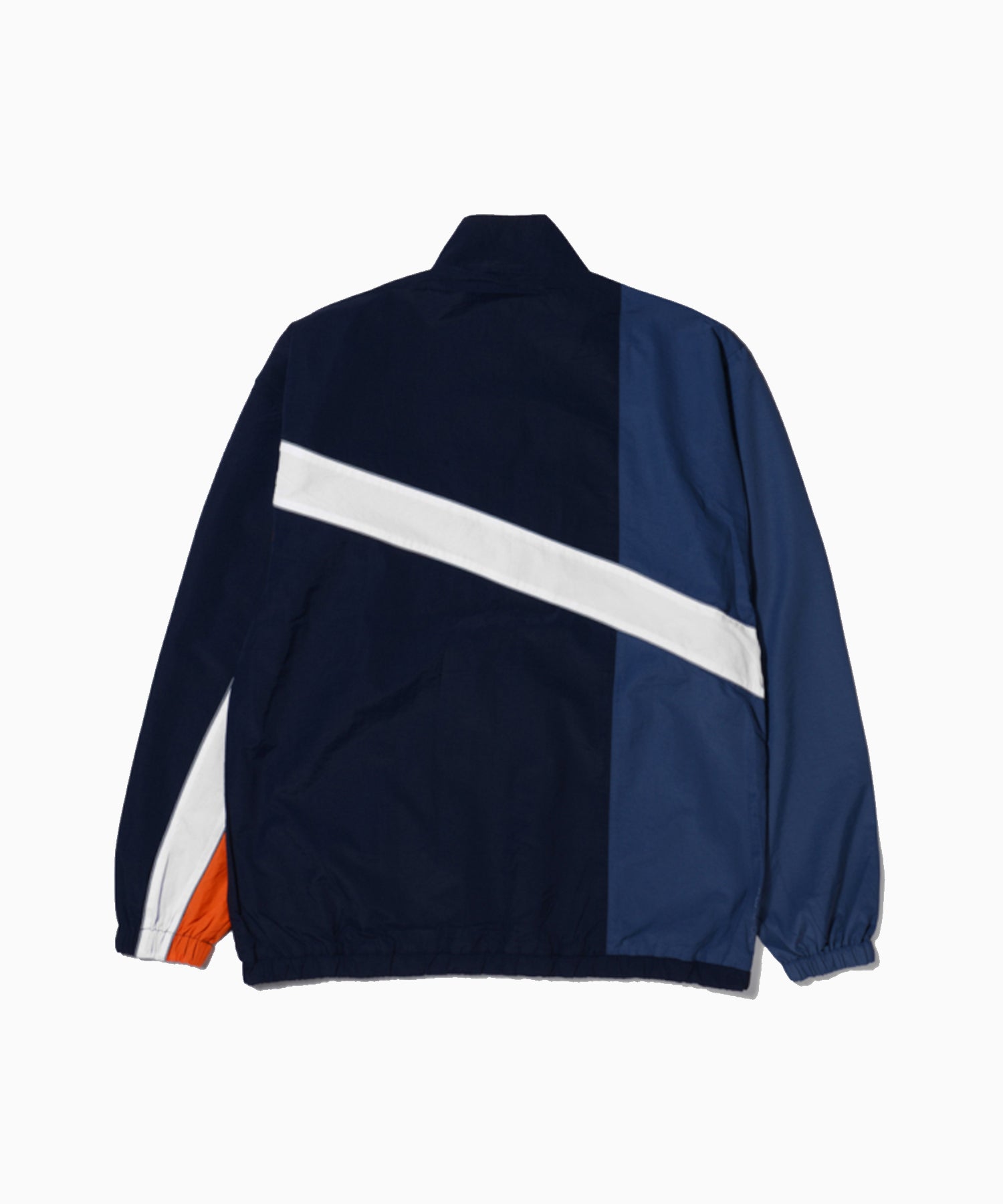 Color-blocked zip-up jacket featuring a bold diagonal reflective panel. Lightweight and easy to layer, perfect for day or night wear.