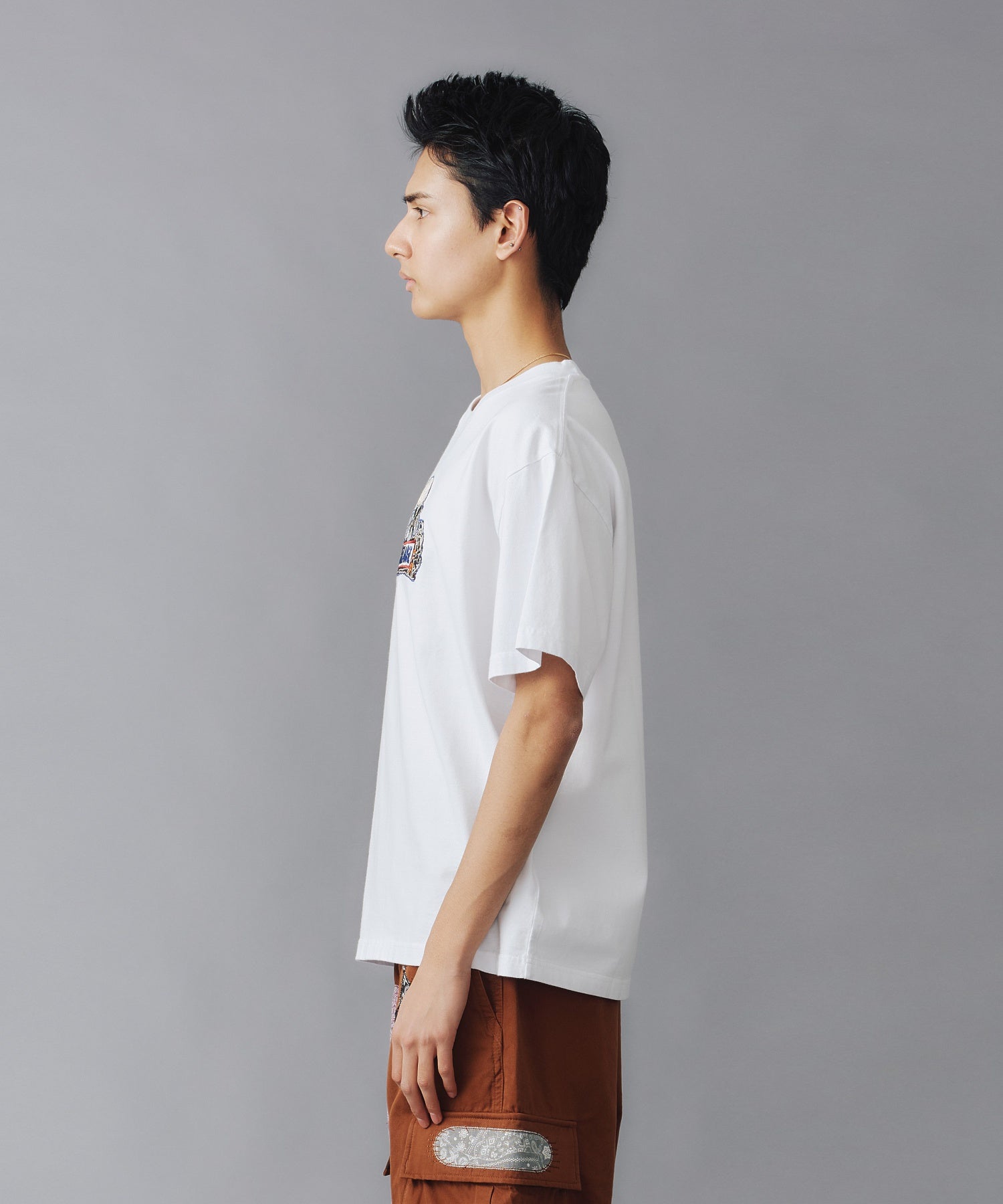 Crew-neck short-sleeve T-shirt with original graphic embroidery on the front.