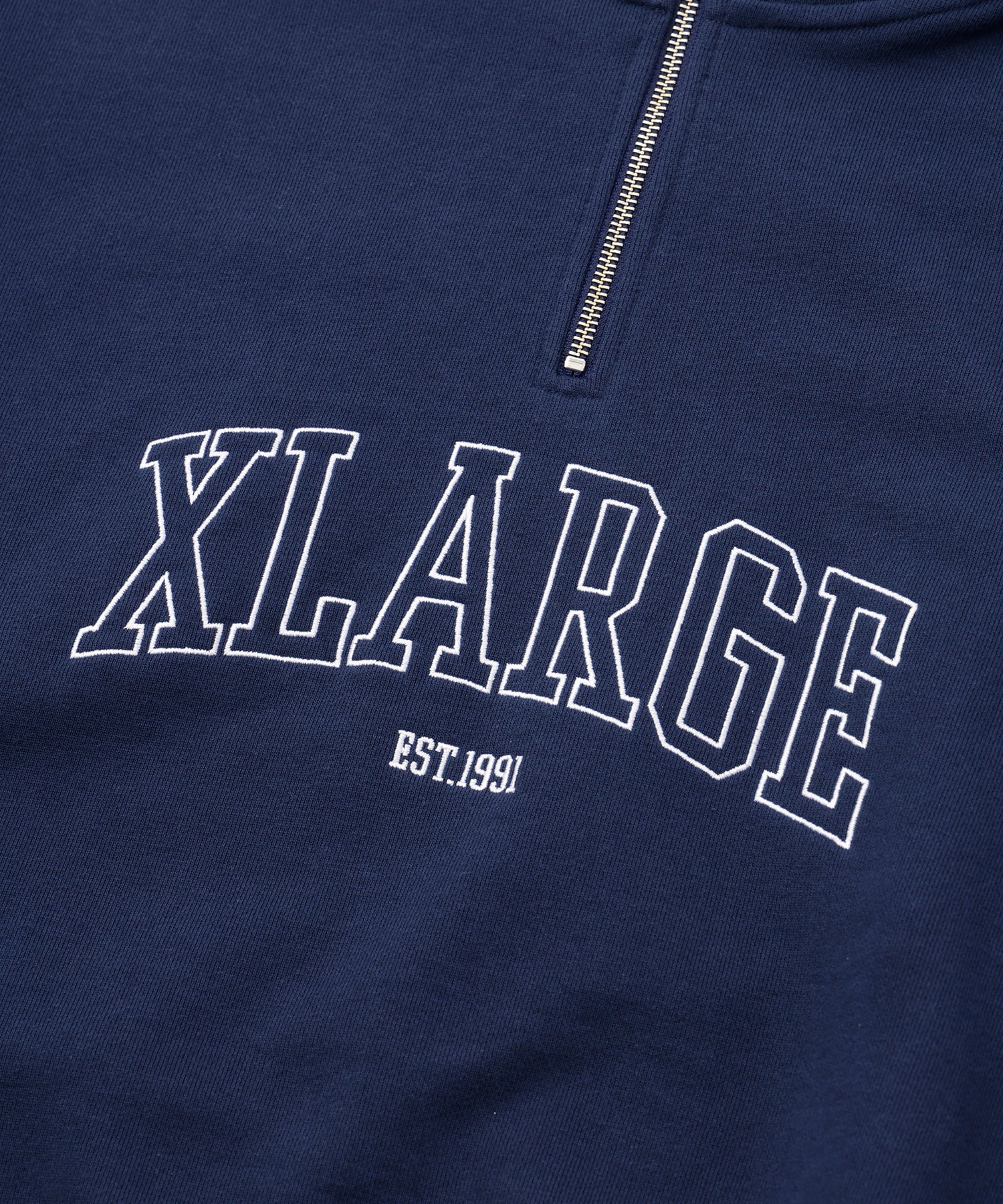 A zip-up sweatshirt featuring an original embroidered graphic prominently on the front.