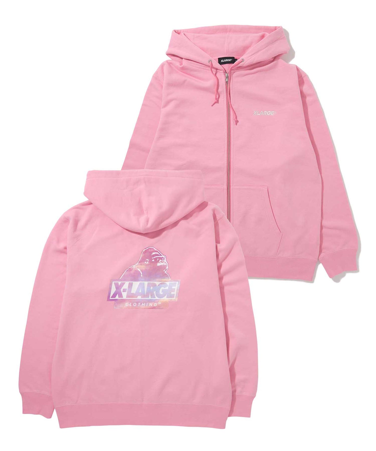 Full-zip hoodie with sunset-toned OG logo on the back.