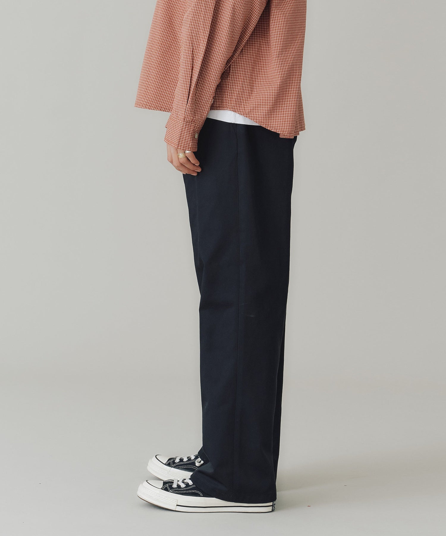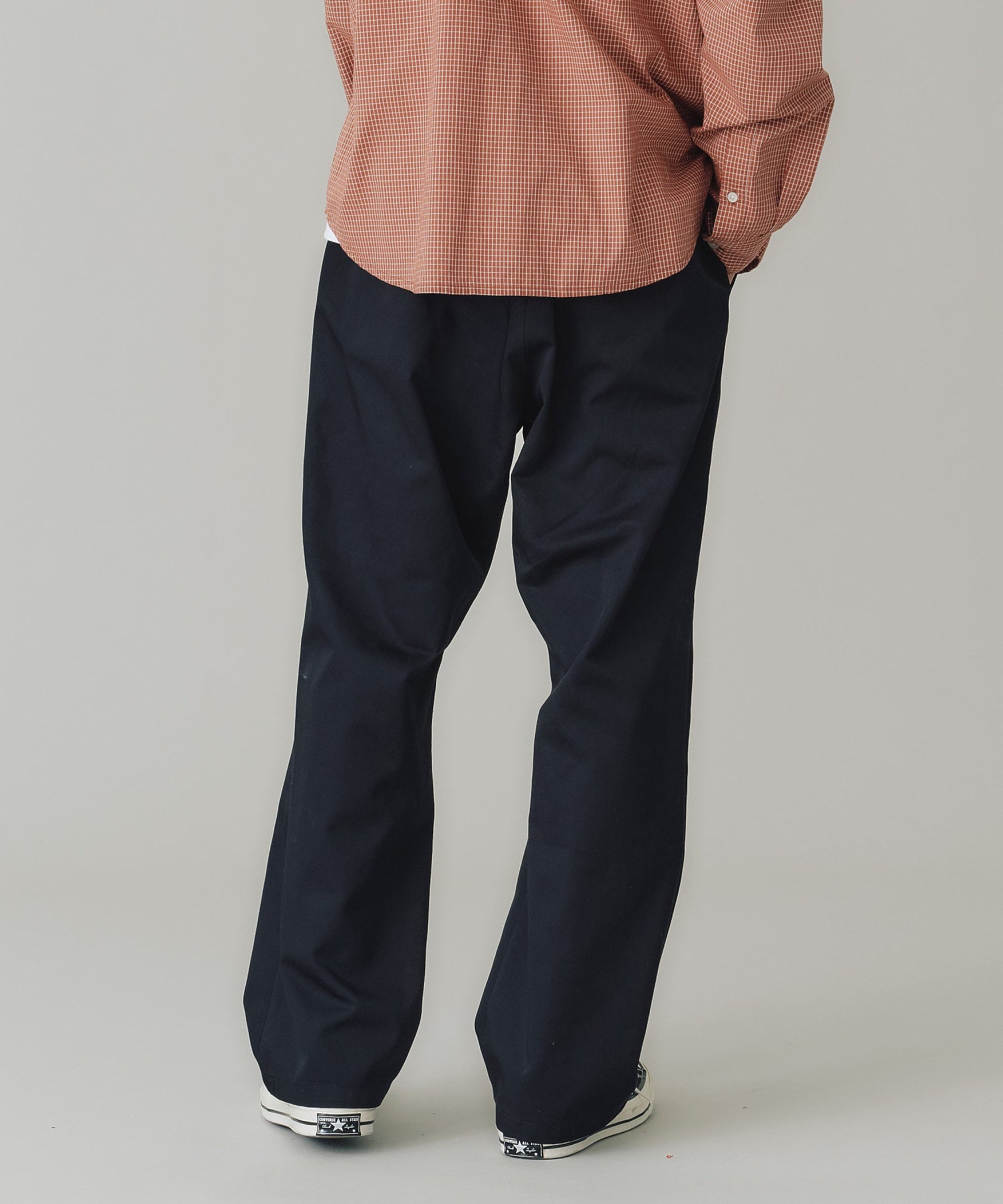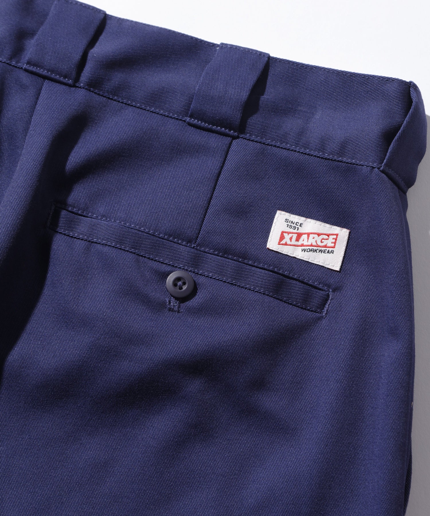 Work pants made with T/C twill fabric known for its moderate stiffness and smooth texture. Featuring logos on the back pocket and logo print on the back waistband.
